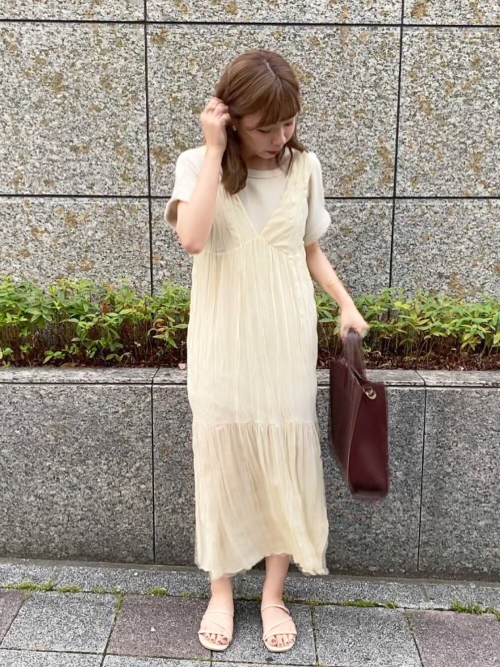 𝚗𝚊𝚝𝚜𝚞𝚖𝚒 のワンピース「【WEB限定】ワッシャーシフォン無地ワンピース/シアー素材ワンピース」を使ったコーディネート