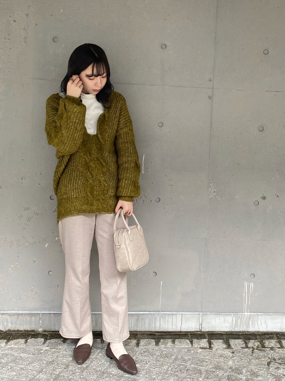 𝚗𝚊𝚝𝚜𝚞𝚖𝚒 のニット/セーター「深Vケーブルプルオーバーニット」を使ったコーディネート
