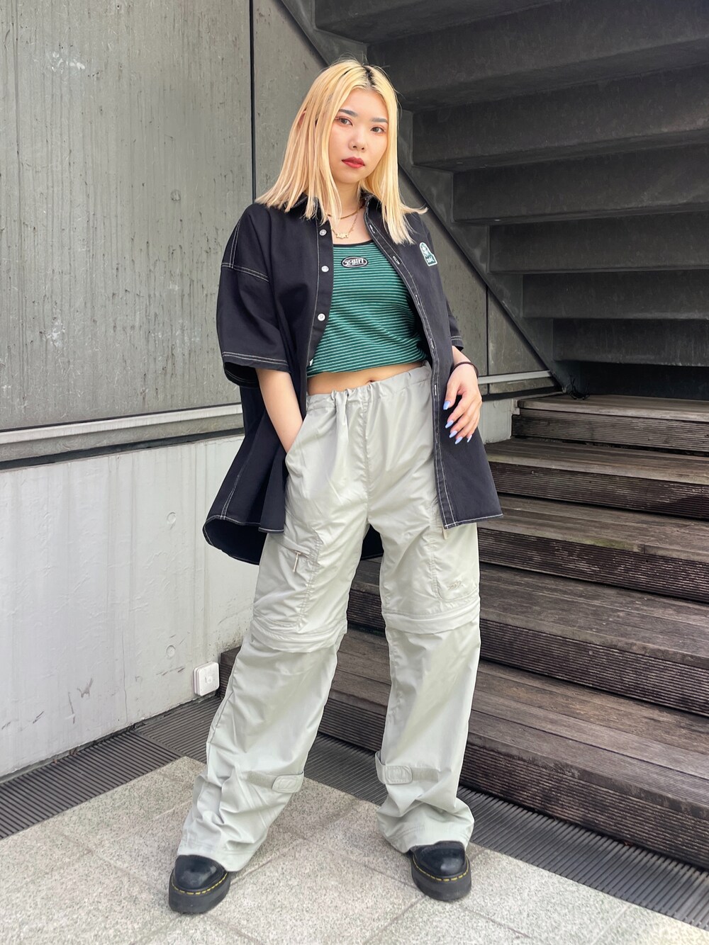 ⭐︎LINA⭐︎(X-girl原宿(ラフォーレ原宿))のカーゴパンツ「GATHERED WAIST CARGO PANTS」を使ったコーディネート