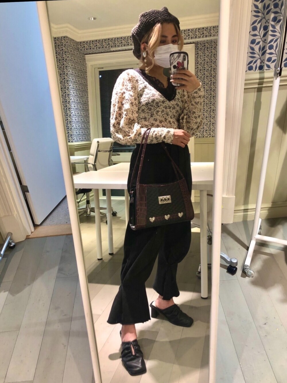 仕事day トップスは韓国の花柄プリントレース🌸