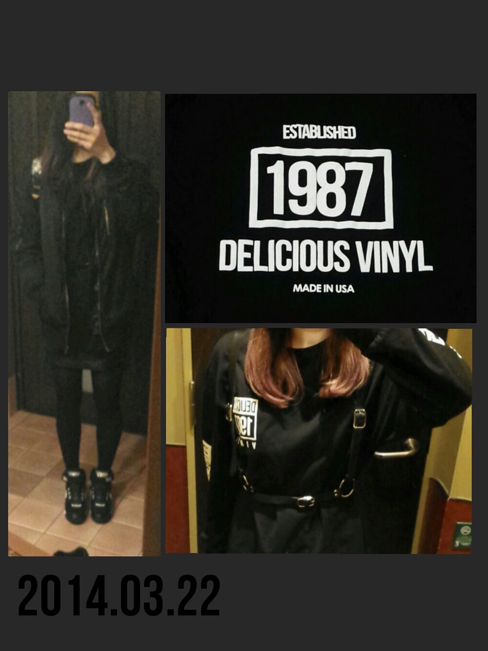 トップス:DELICIOUS VINYL ボトムス:H&M ハーネス:WEGO 新しいロンTおろしたけど、なんとなく いつもと変わらないしハーネスつけてみた。 レザースカートやったからしっくり。