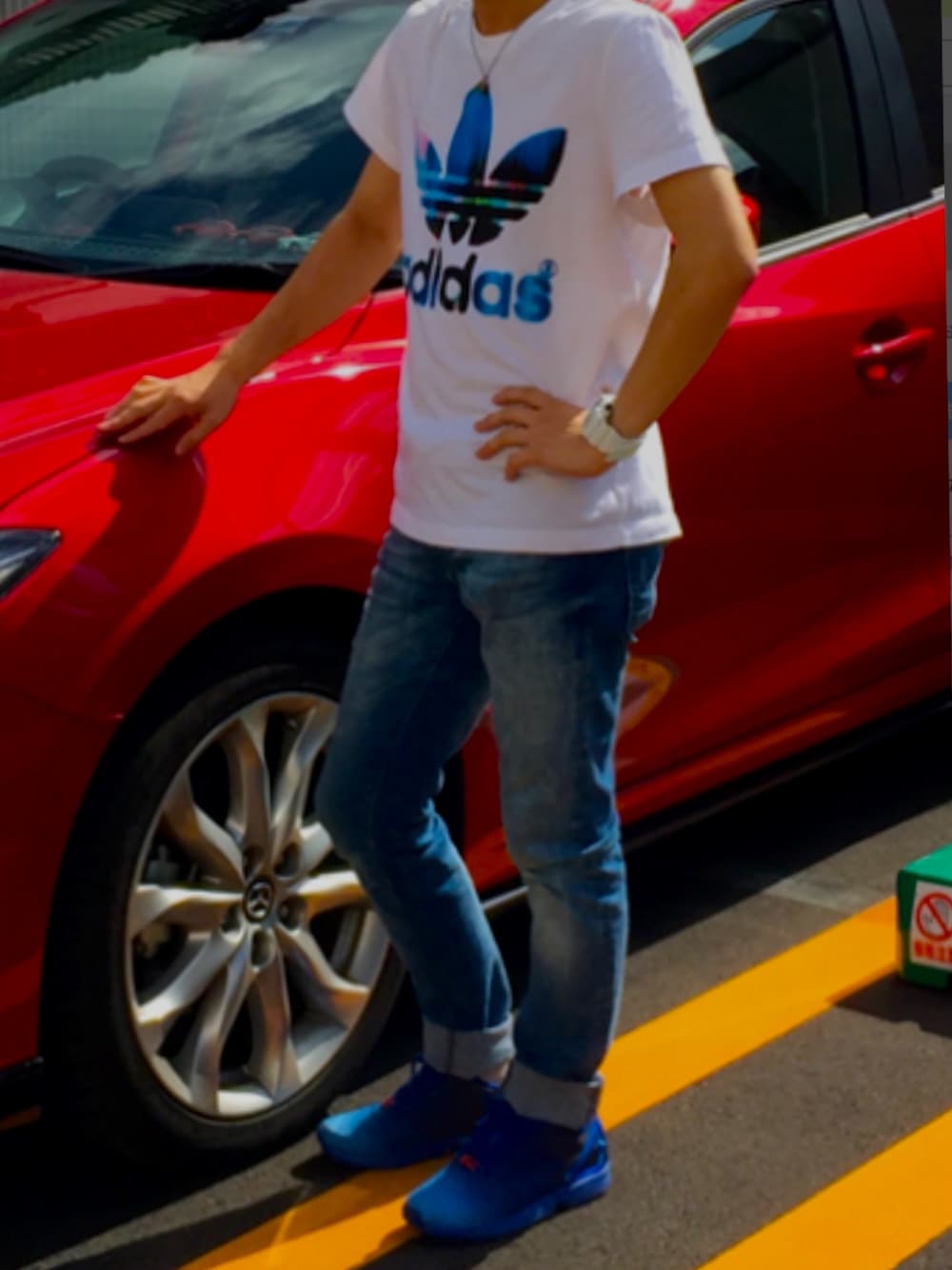 ドライブに行った際のコーデ✨ 今日はブルー系を意識してコーディネートしました! どれも使いまわせるデザインで使いやすく重宝しています😊 それにしても朝は天気悪かったですが雨も止んでよかったです😋