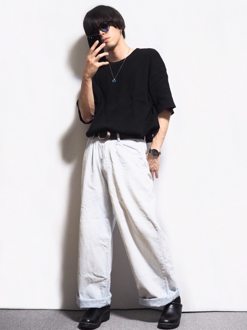 mashima.のデニムパンツ「デニム ワイドパンツ/ビッグシルエット」を使ったコーディネート