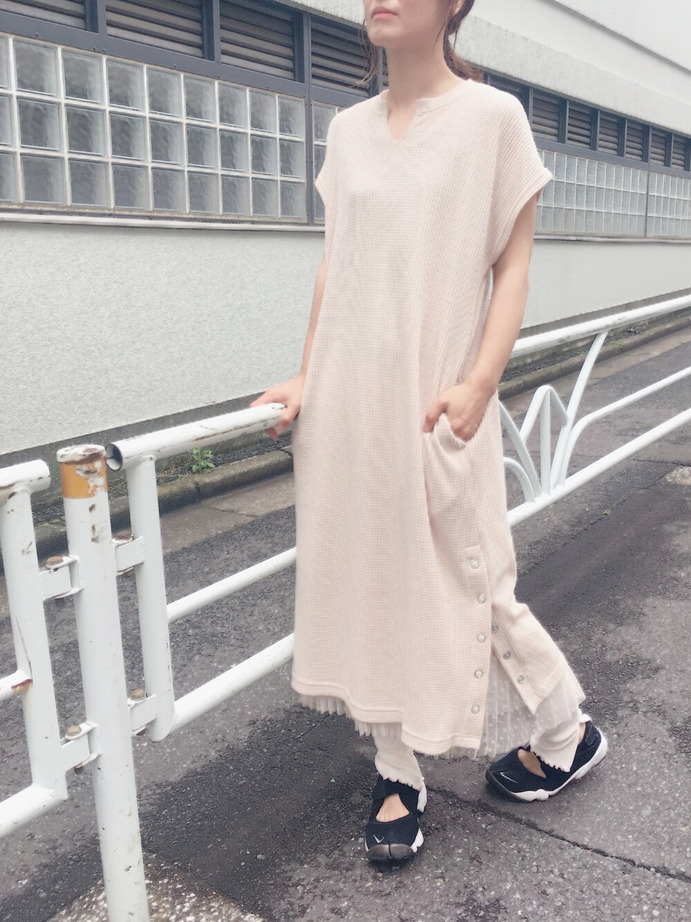 ibac☺︎のワンピース「BIGワッフルキーネックワンピ」を使ったコーディネート