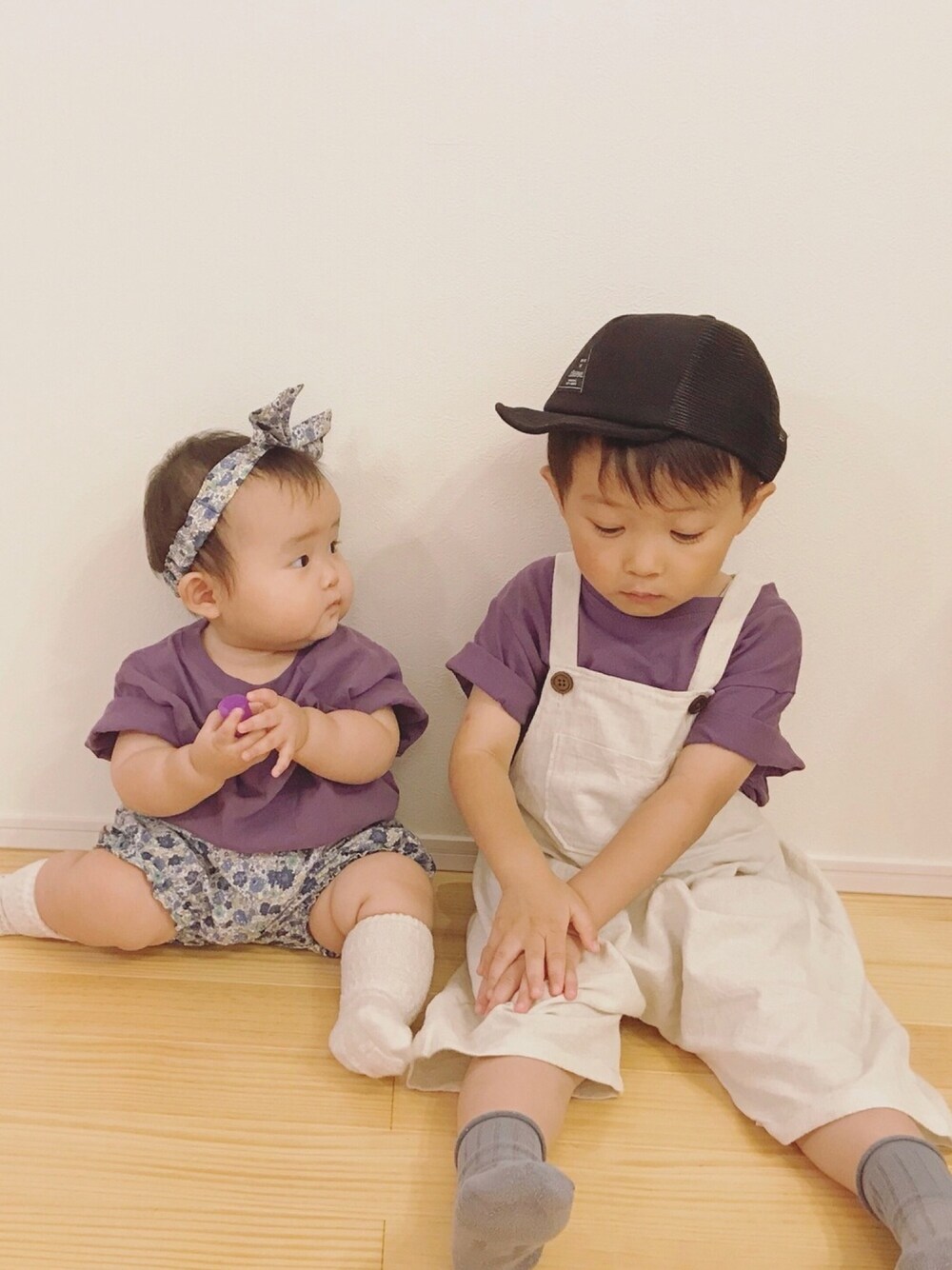 覗いてくれてありがとうございます◟́◞̀ igやってるのでよかったら 遊び来てください♥ GUのパーポーTで 👦🏻👧🏻link*⋆ サロペ、カボパン、ヘアバンドは handmade⑅⑅