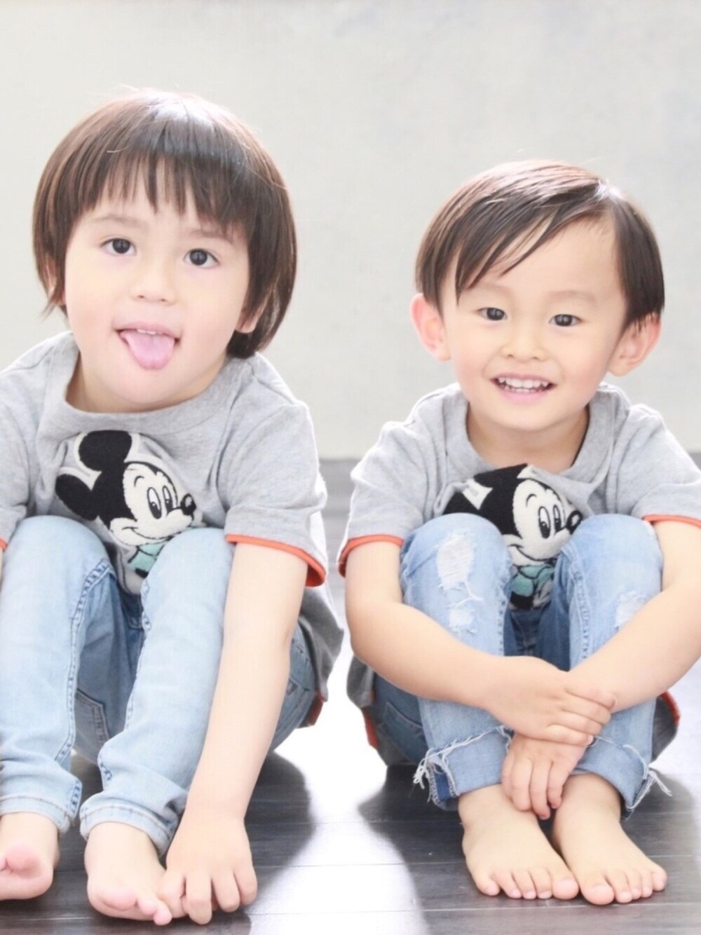 仲良しのお友達と3歳の記念バースデーフォト📷💕 ずっと仲良しでいてね♡ 小窓は仲良し親子コーデ♡ ママ同士、グローバルワークのTシャツで揃えました( ˊ̱˂˃ˋ̱ )♡
