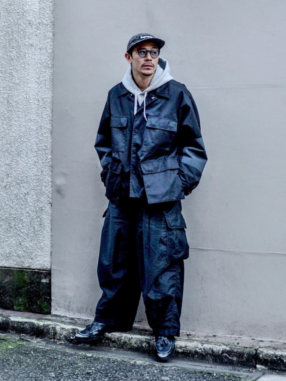 本日はROTOLのジャケットを主役にしたコーディネート。 ポケットの大きなワーク&ミリタリー なテイストがカッコいいオーバーサイズのジャケット。このジャケットに合わせてNeedlesの太めのカーゴパンツをチョイス。 黒黒で少し無骨になり過ぎてしまったのでパーカーを挟んで少しカジュアルなアクセントを足しました。 こちらのNeedlesのカーゴパンツに関しては先日Youtubeの動画でご紹介しております。興味ある方は是非覗きにいらして下さい♫ Youtube → KODONAちゃんねる Instgram → @ICCHO_0224 Shop → @Kodona_Tokyo