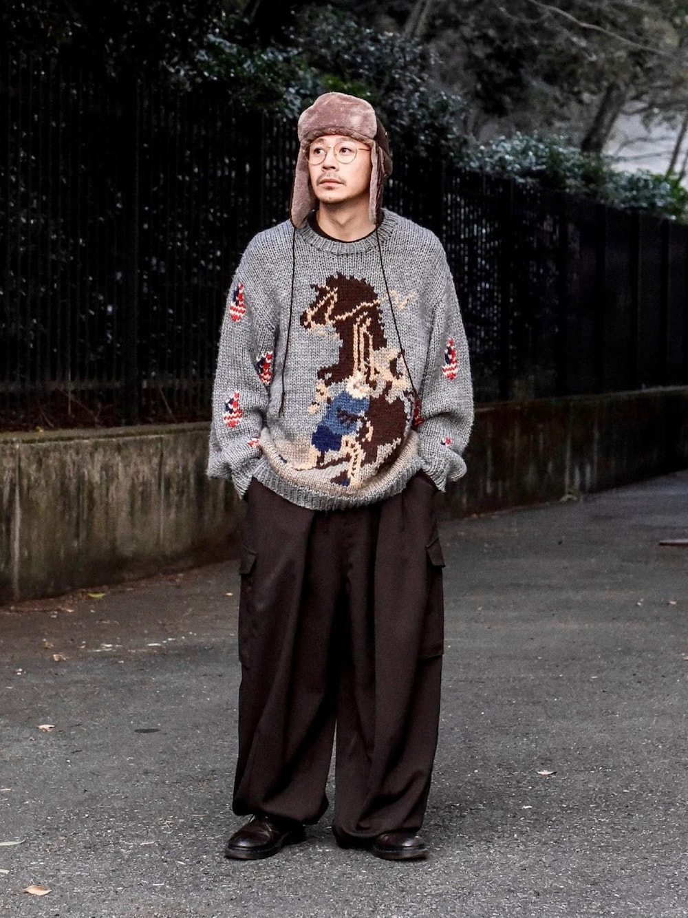 Knit : #jieda Pants : #yotsuba_tokyo Cap : #SuperNova Shoes : #drmartens