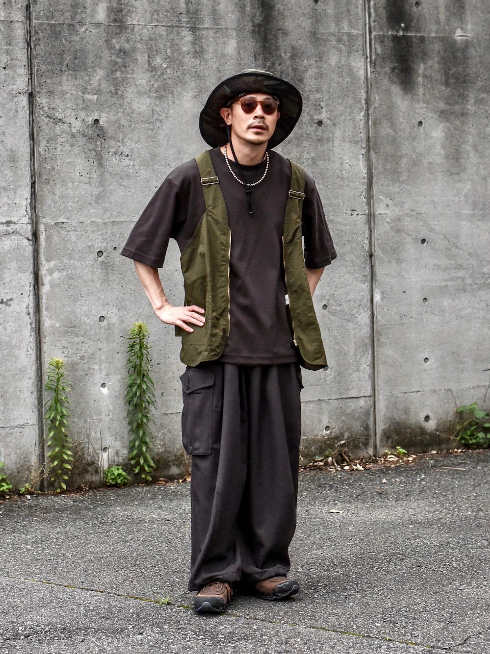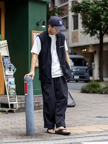 Vest : #caloline Inner : #uniqlou Pants : #yotsuba_tokyo Hat : #nikeacg Glasses : #radiall Shoes :#OAMC #adidas この日は @cal_o_line_official のオーリブのナイロンベストを主役に🔥 ベストってシンプルなコーディネートに一つ加えてあげるだけでガラッと表情を変えてくれるのでコーディネートが同じようなスタイルになりがちな夏場には有難い。 結構合わせ方が難しいと思われがちだけど、インナーとパンツを同色で合わせて置けば企画的簡単にまとめられます♪