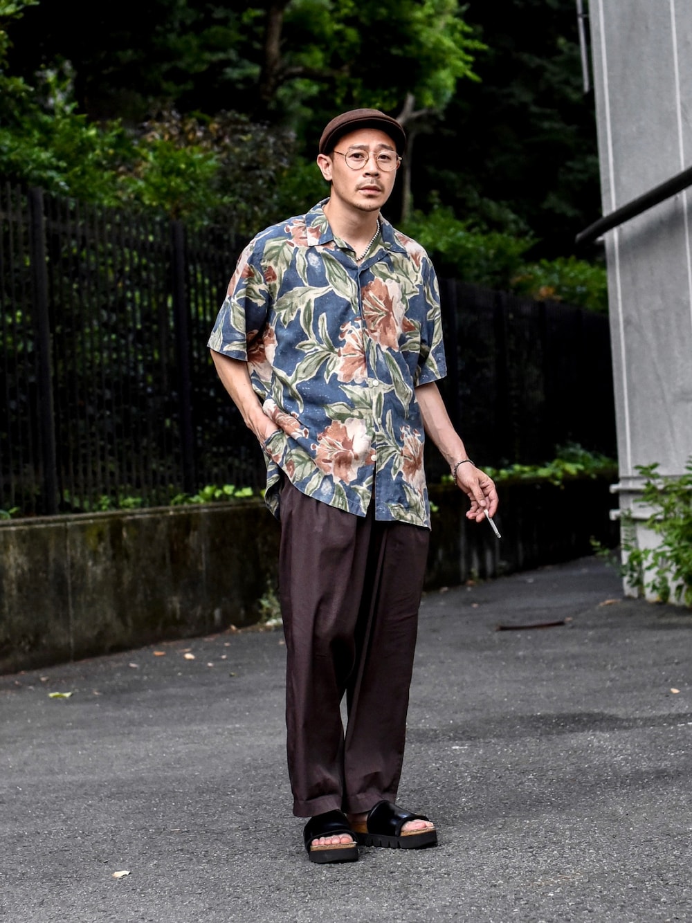 Shirt : #poloralphlauren Pants : #isseymiyake Cap : #Vintage Glasses : #Radiall Shoes : #henderscheme この日は @poloralphlauren のVINTAGE CAMPというモデルのリネン&コットンのオープンカラーシャツ。 ブリーチした後に染めたような独特の柄のデザインが面白く、ヴィンテージらしい雰囲気がお気に入り。 存在感のあるアイテムなのでコーディネートは定番のブラウンの合わせでシンプルにヴィンテージテイストにまとめました。