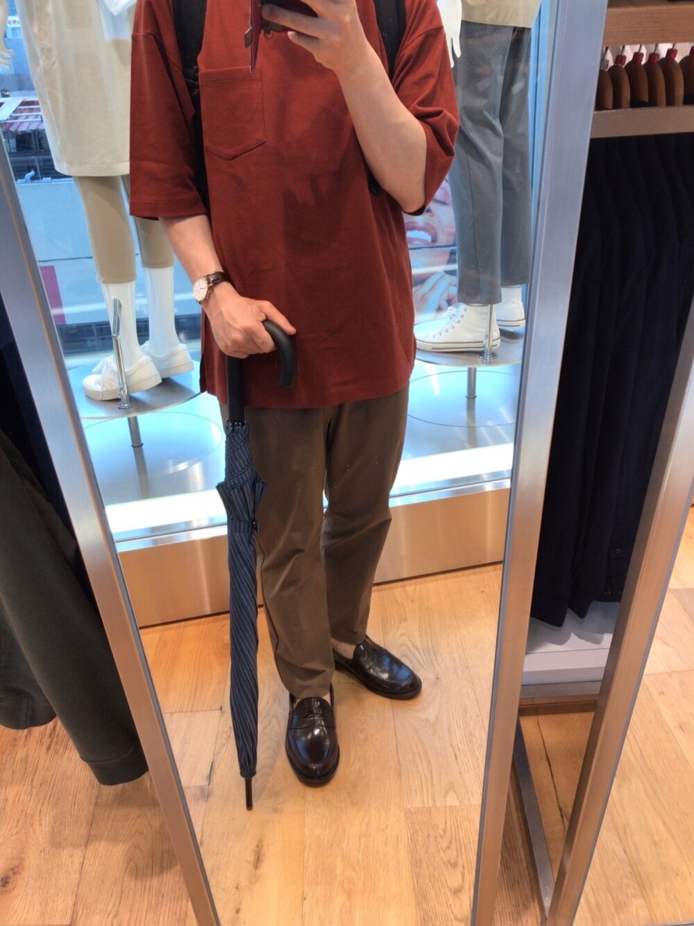雨の日は機能性素材で… ジャーナルスタンダードのセットアップを使ったコーデはこの前投稿しましたが、今回はパンツのみを使った雨の日コーデ 撥水に加えてシワにもなりにくい素材なので、雑に洗えるのも嬉しいところ シンプルなワンツーコーデでもサーフニットの質感と全体の色味で脱地味を…