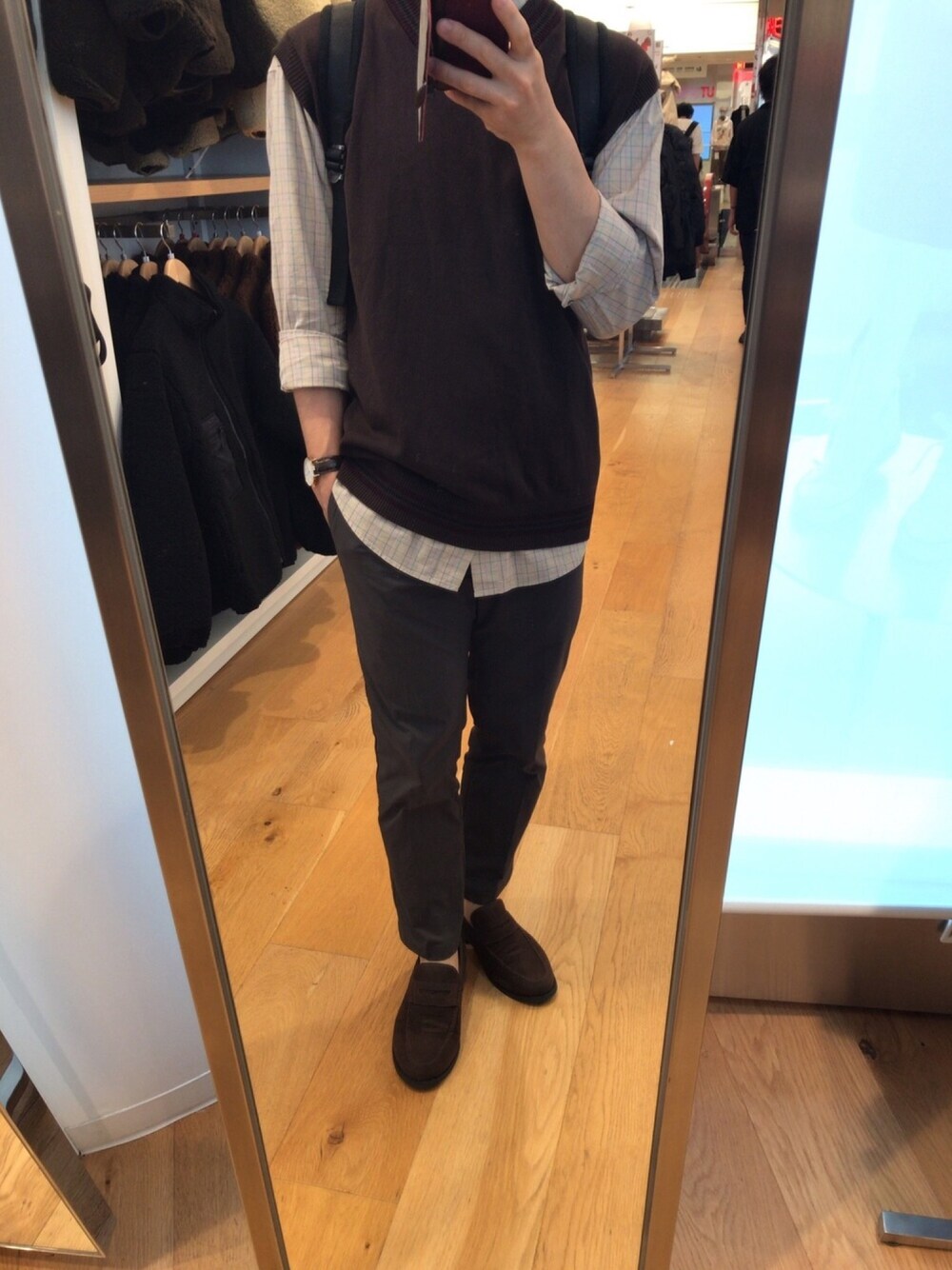 トレンドとは言え、ニットベストをどう着るべきか… GUのチルデンニットベストを使った着こなし トレンドのニットベストですが、個人的には大学生とか20代前半くらいの子が良く着てるイメージがあるんですよね、あと韓国系のファッションでも良く着られてる印象…(多少偏見もあるかもしれませんが…笑) インナーにTシャツを合わせたりすると、まさにそんな感じにしか見えなくなるので、今回は大人っぽさを意識してインナーにはシャツを、ニットベスト・パンツ・シューズはあえておっさん臭い印象もあるブラウンで統一 このくらいなら大人のニットベストコーデとして悪くはないかと…