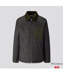 ゴチャゴチャしてるようで意外とドレスライク… ユニクロ×JWアンダーソン2019AWのキルティングブルゾンを使った着こなし ダークグリーンのキルティングブルゾンにダークブラウンのニット、デニムシャツ、グレンチェック柄のパンツ…と色数もデザインも使っているはずなのに、なぜかドレスライクに感じるのが面白いところ