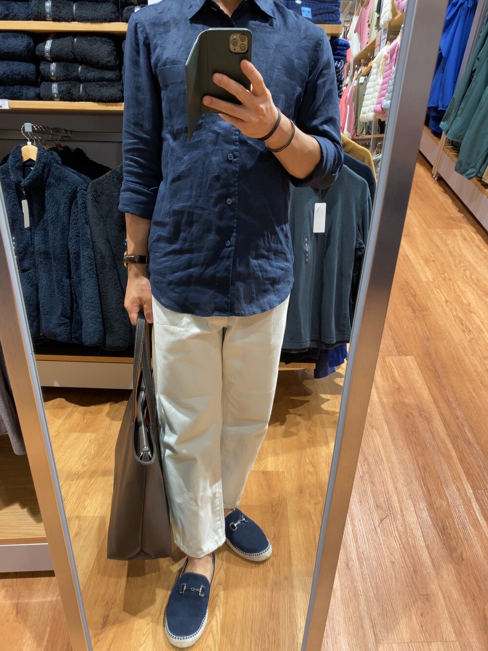 THE・大人スタイル リネンシャツにホワイトデニムを合わせた大人な着こなし 自分の中では定番過ぎて語ることもないくらいですが、足元をビットエスパドリーユにしてるのは一応装飾性のトレンドを意識してのことです(この日はまだ暑かったのでエスパドリーユにしましたが、タッセルローファーもアリですね) トレンドには逆行していますが、こういうシンプルなスタイルもやっぱり格好良い!!