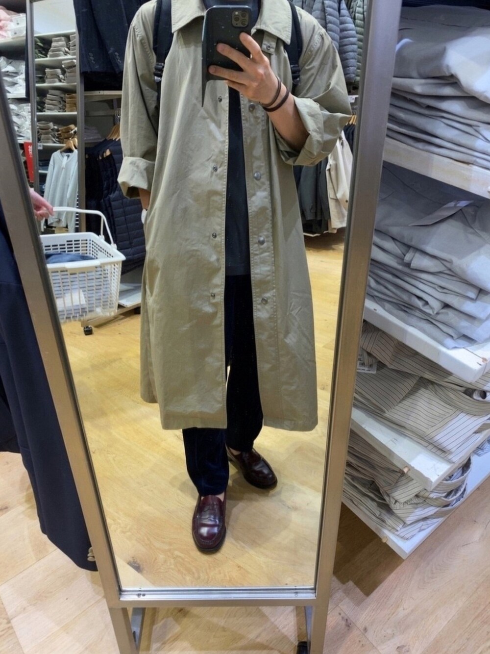 最近のユニクロはレディースが素晴らしい… ユニクロU2020AWレディースのライトロングコートを使った着こなし 同じユニクロUのトレンチコートといいユニクロ×JWアンダーソンのステンカラーコートといい、最近はレディースのクオリティが高いせいでメンズラインが微妙に見えてしまう…(~_~;) 結局ユニクロUもユニクロ×JWアンダーソンもアウターはほとんどレディースしか買ってないような…(メンズも悪くはないんですが、一緒に並んでるレディースを見ちゃうとそうならざるを得ないと言いますか…) 今回着てるライトロングコートは薄手なので、こうやって腕まくりすればかなり長い期間活躍出来ておすすめです(個人的にもアウターを腕まくりする着こなしが好きなので、春秋はどんどん着ていきたいと思ってます) あと、めっちゃ他人の手映り込んでる… 笑