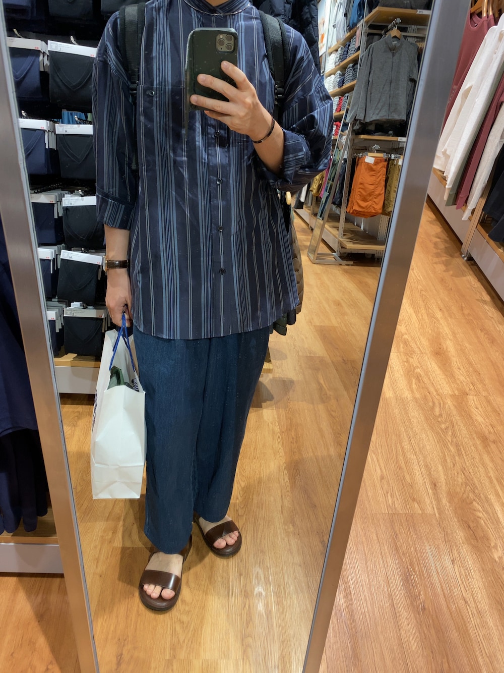 シルキー メゾンスペシャルのシルクコットンストライプシャツを使った着こなし 今日はシャツが主役!!…以上!! それぐらいシンプルなコーデ