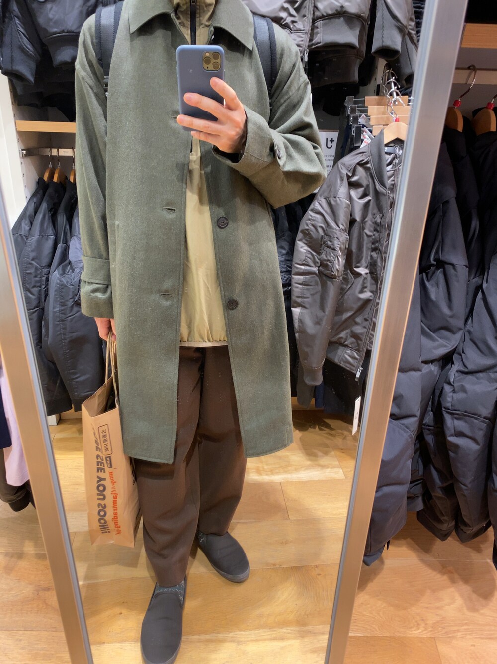 上品なコートをどう崩すか… markaのステンカラーコートを使った着こなし 高級感たっぷりなコートにあえてハーフジップのナイロンジャケットを合わせてスポーティに崩してみました
