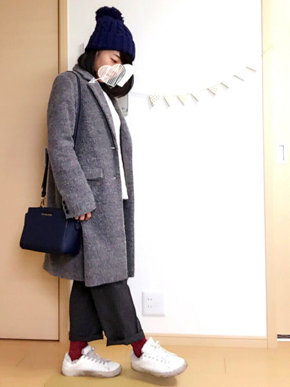 昨日のコーディネートですが。 ショコラのイベントに行って獺祭スパークリングや美味しいチョコをたくさん食べ幸せになりました。 暖かかったので少し春のような軽めにしたつもりですが、ニット帽にはまっているので手放せませんね。