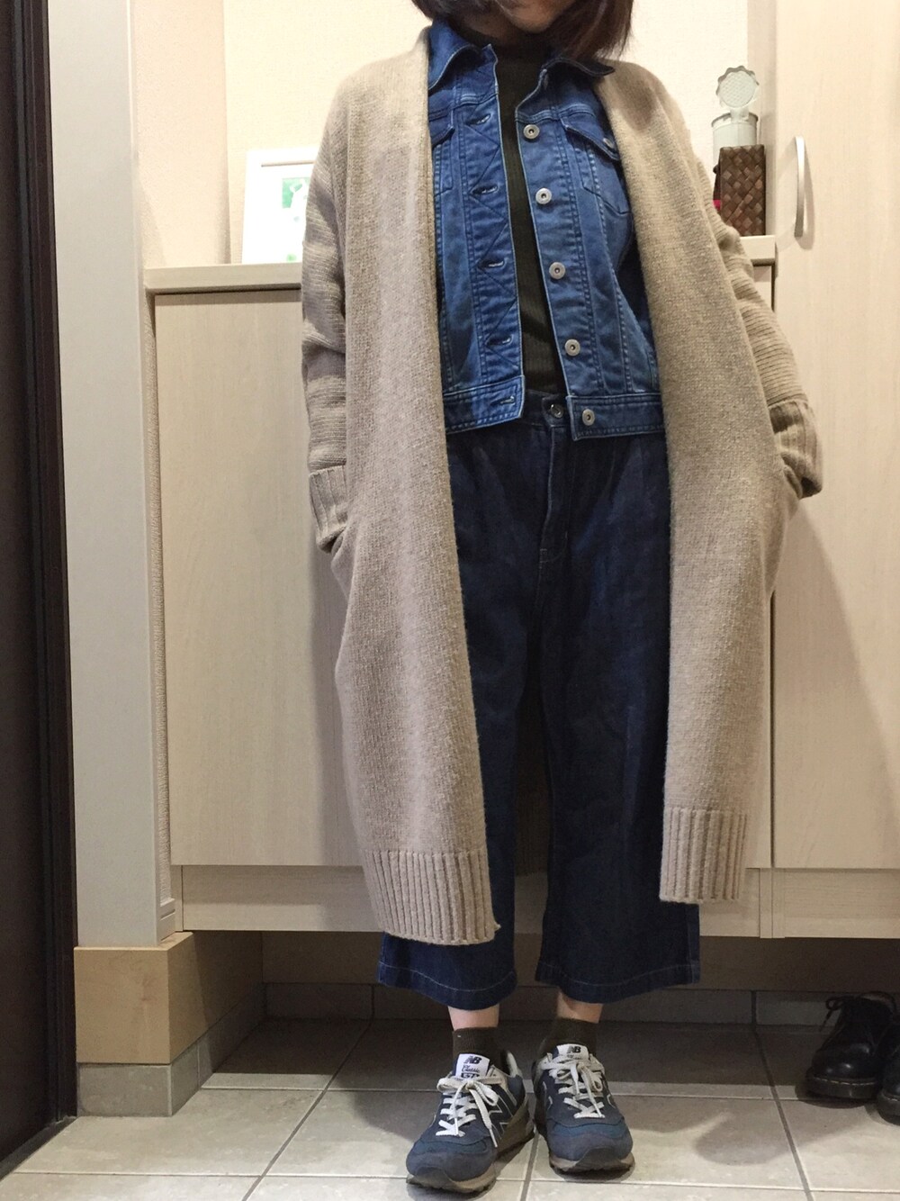 iccoのノーカラージャケット「【浜島直子さん×studio CLIP コラボアイテム】 3ゲージストレッチロングニットガウン」を使ったコーディネート