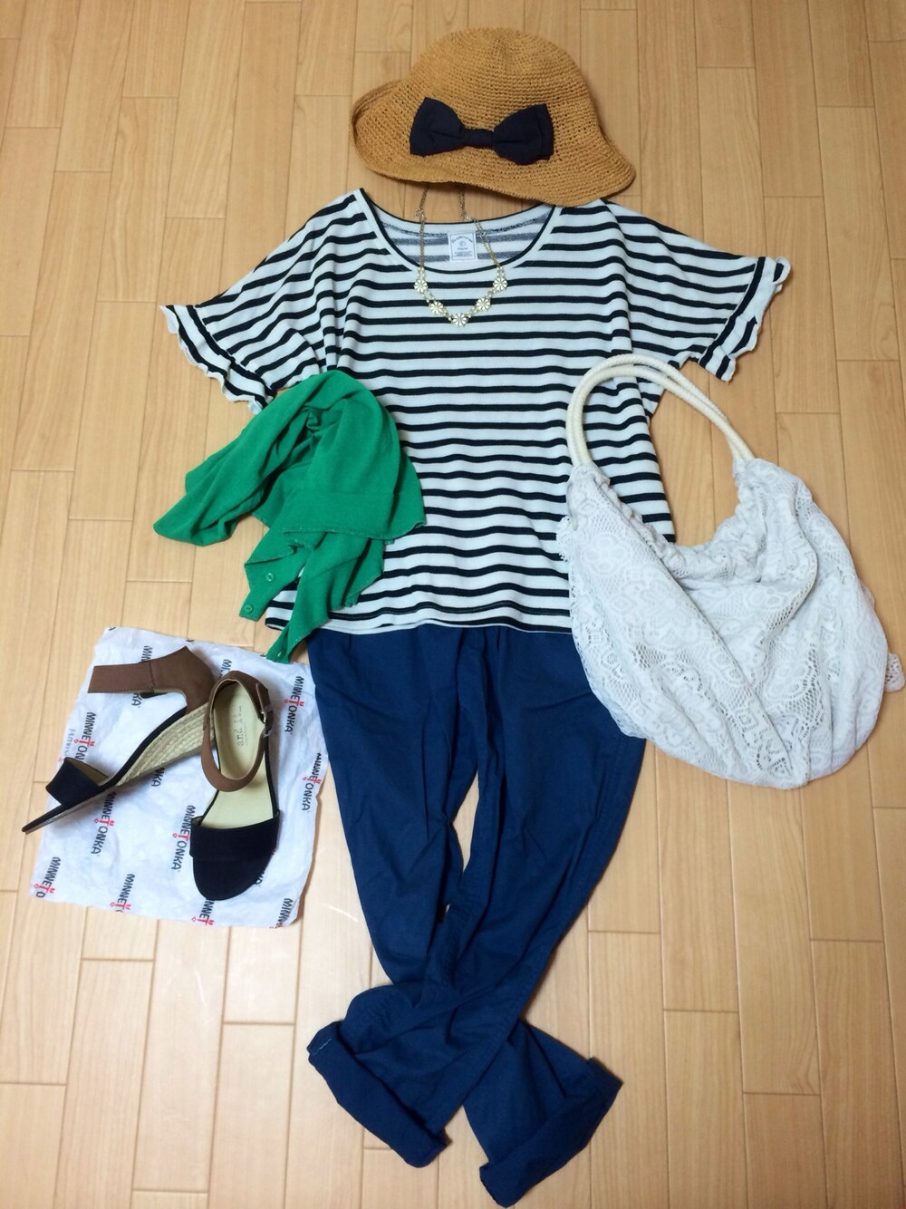 先日、浅草へ行った時のコーデ。水上バス乗って楽しかった♡ トップスの袖がかわいくてお気に入りです(*^^*) UV対策は抜かりなく〜 トップス/Discort カーディガン/BRISS POINT パンツ/coen 帽子/Another Edition ウェッジソールサンダル/and it