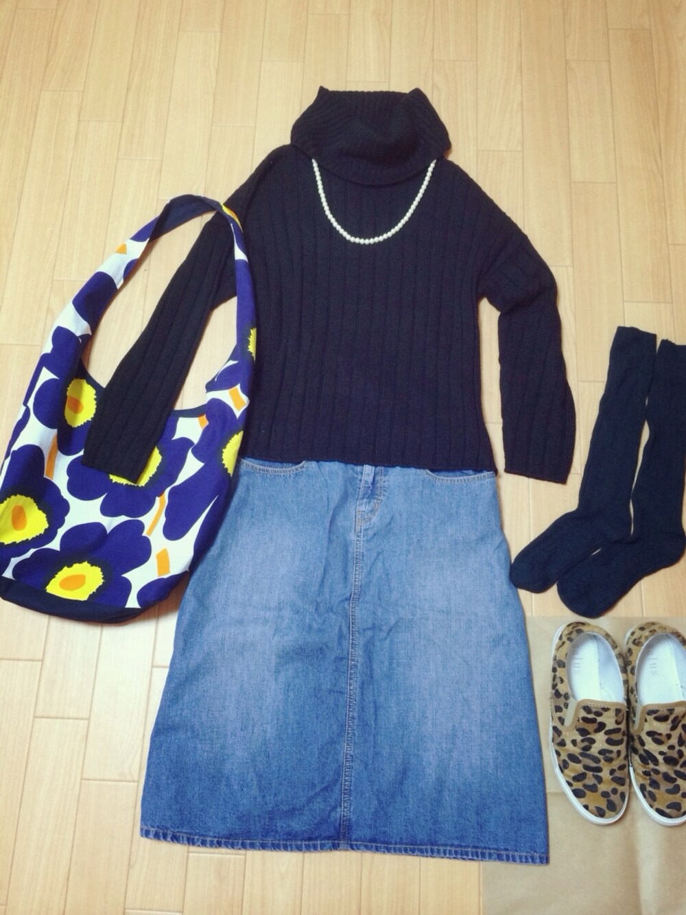 ニット :不明 スカート: Rinajour バッグ :マリメッコ かなり久しぶりの投稿! バッグは手作りです☻ 見えにくいですが靴下の色はグリーンです。