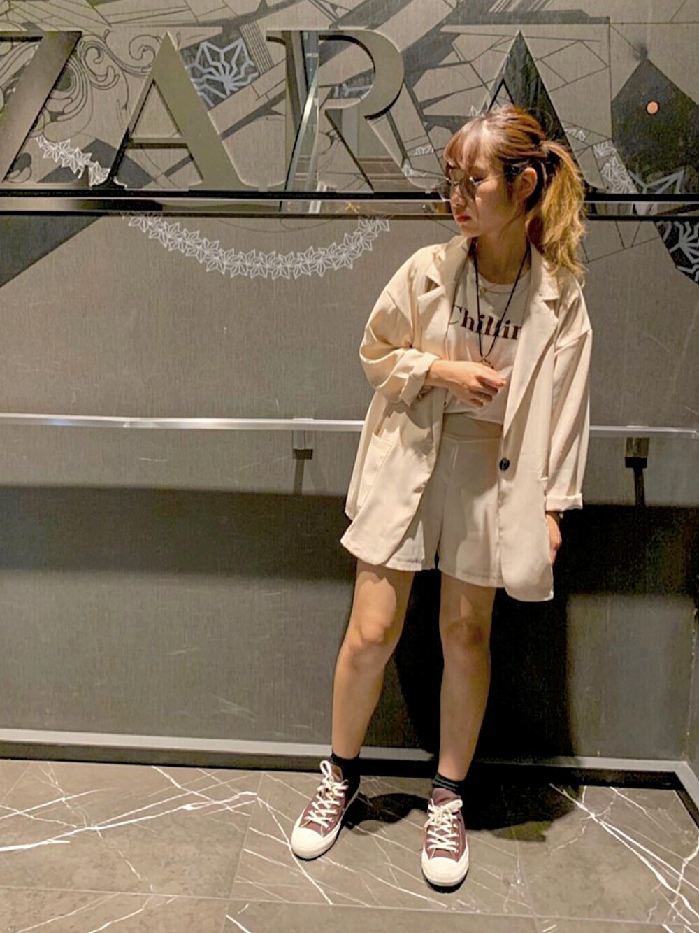 ベージュ × ブラウンコーデ. ベージュのセットアップゆるい感じで使いやすい✨
