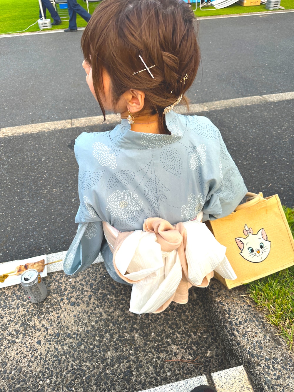 プチプラでも高見えする優秀浴衣♡ 柔らかい兵児帯を組みあわせてボリュームの出るアレンジで周りに差をつけて🌼.* 浴衣、兵児帯、帯留め、全てGRLです。