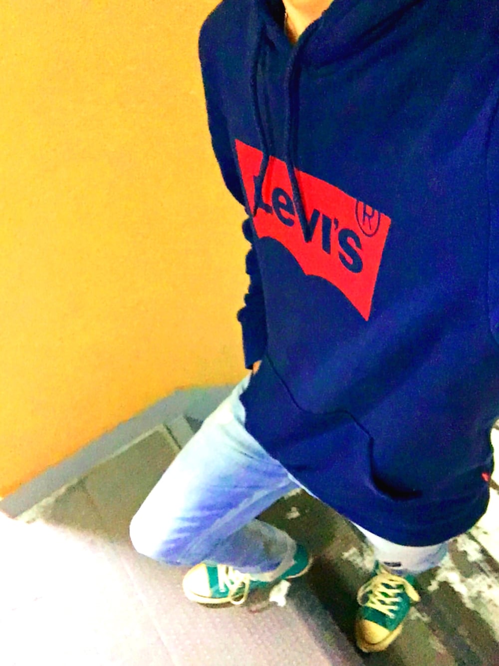 カフェオレの海に沈みたいのパーカー「バットウィングプルオーバーフーディー ネイビー」を使ったコーディネート
