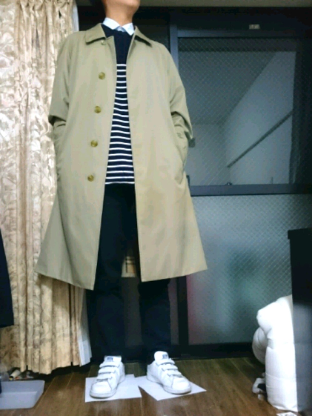 見てくれてありがとうございます! バーバリーのオーバーコートに中はグローバルワークのボーダーニットとユニクロのオックスフォードシャツを合わせてみました😆 足元はエディフィスとコラボのスタンスミス! コートでキレイめになりがちだけど中の物と靴でカジュアル寄りにしたつもりです。笑 良かったらいいね、SAVEお願いします!