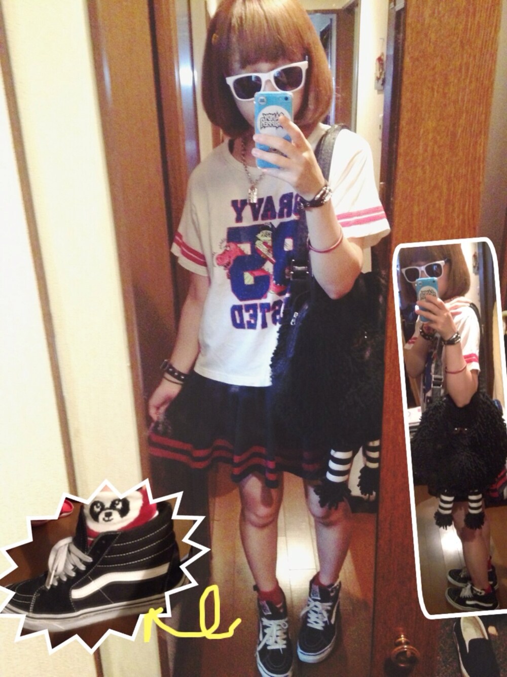 今日はくそ暑〜な天気の中、用事を済ませに外へ! Tシャツはこないだのタンクとスウェットパンツがくっついた新作のセットアップのやつで、下に着てるのは昔買ったTシャツとタンクとスカートが繋がってるセットアップやつ(^o^) セットアップ同士から違うセットアップの片割れを組み合わせた笑 でもなぜか両方赤ラインが入ってる!! 靴下はPEPE バッグはモップくん 靴はVANS 暑かったのでさらさらする日焼け止めを新しく買いました〜消費すごそうだー それより、名古屋の梅雨はいずこへ?笑 晴天続きで梅雨感じたの梅雨入り初日だけだわw