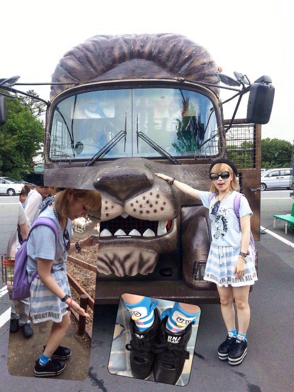 山梨二日目!! サファリパークへまたまた行っちゃった〜笑 昼間は初めてで、超楽しかった♡ アニマルな夏服がなくて(秋冬は多いのに!)なんかファンシーな色合いになっちった。 ユニコーンのトップスにペンギン靴下がアニマルかな。全部サックスブルー系にした。 本当は靴を違う合わせにしたかったんだけどお泊まりで靴の換えをもってけなかったのでこのスニーカー(╯⊙⊱ ⊙╰)