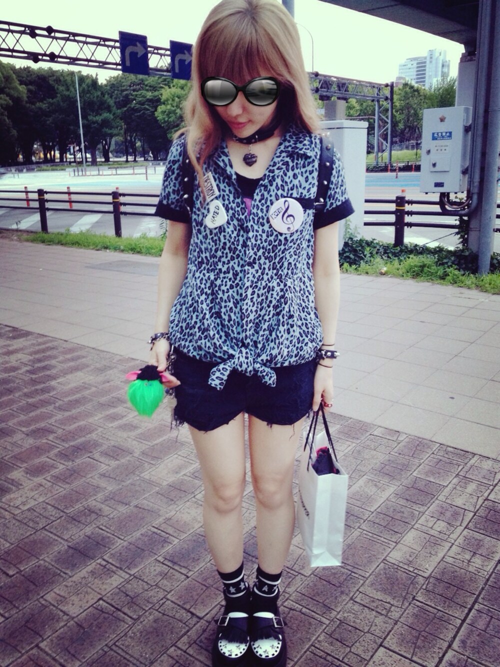 髪がロン毛のときの*\(^o^)/*笑 このRNAのワンピちょーお気に入りなの、派手でちんビラだけどもw katieの缶バッジに、candy stripperの靴下とラバソ、ayamoちゃんリュック背負ってます☆