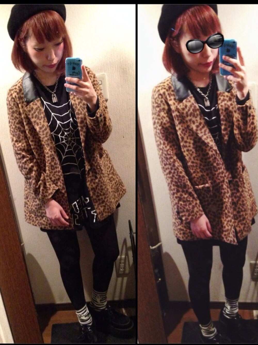 ほぼ新品で譲ってもらったヒョウ柄のジャケットを羽織ってみた。 出かけてないけど笑 靴とアクセ以外candy stripper 靴下はオバケ!靴はunderground♡