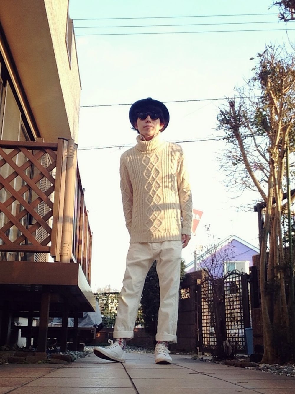 目から下をオールホワイトで。 タグは遡って無理矢理柄ソックス×ワントーンにしました。笑 前回もあげたHOLOHOLOパンツちょっと大きいんですがはいててとても楽です。