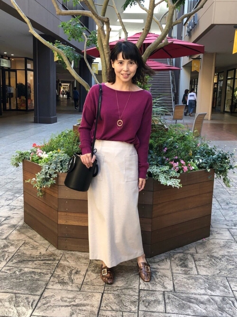 タイトスカートでキレイ目に♡ 温かみのある素材でこれからの季節にぴったり。 合わせたニットは前後2wayで使えるお役立ちアイテム◎ 柔らかな肌触りと美シルエットで 色違いで欲しくなります♪