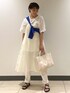 ホワイトコーデのアクセントに コットンリネンのカーディガンをプラス◎