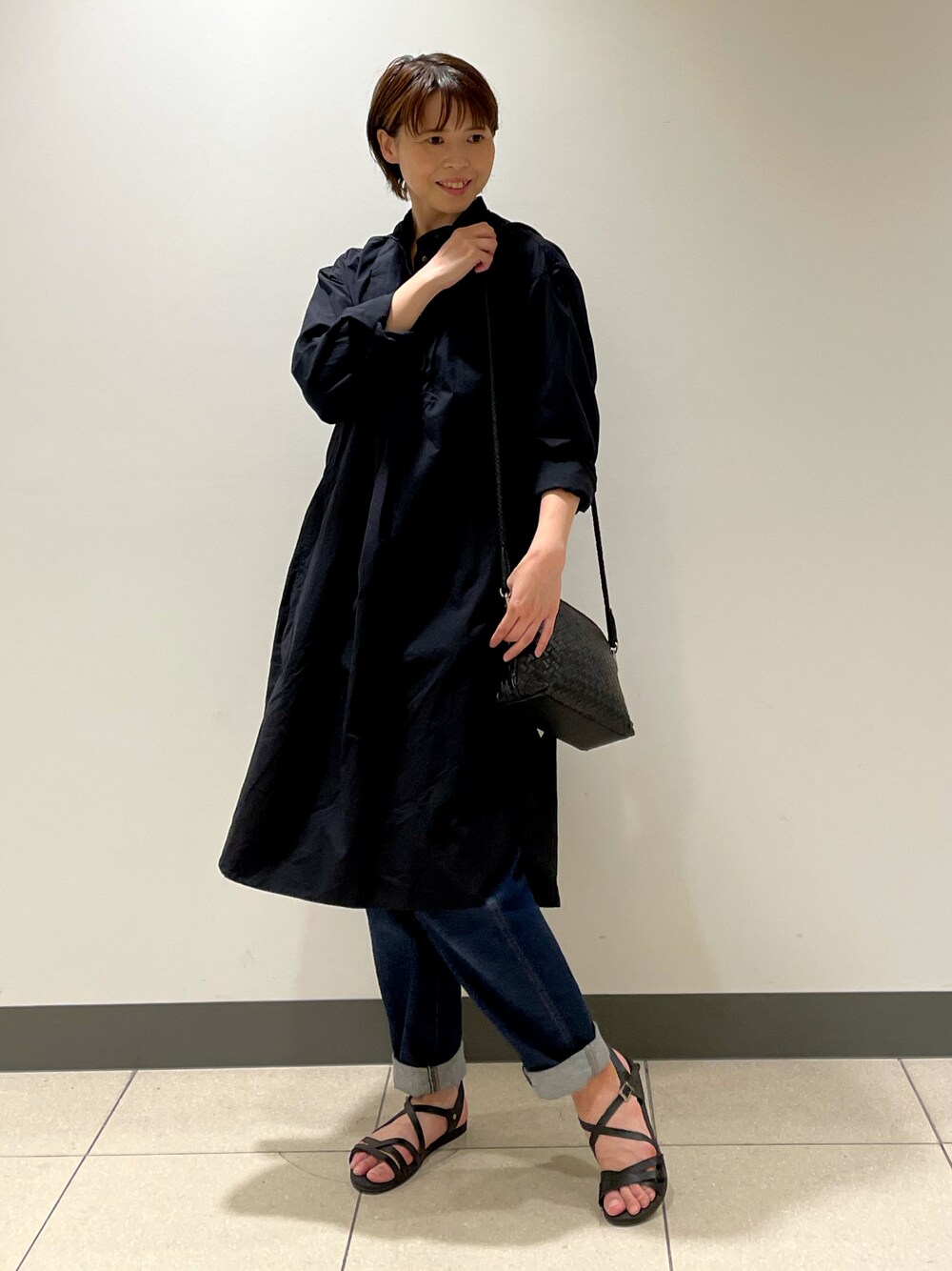 ワンピース×デニム ブラックで統一したシンプルコーデに。
