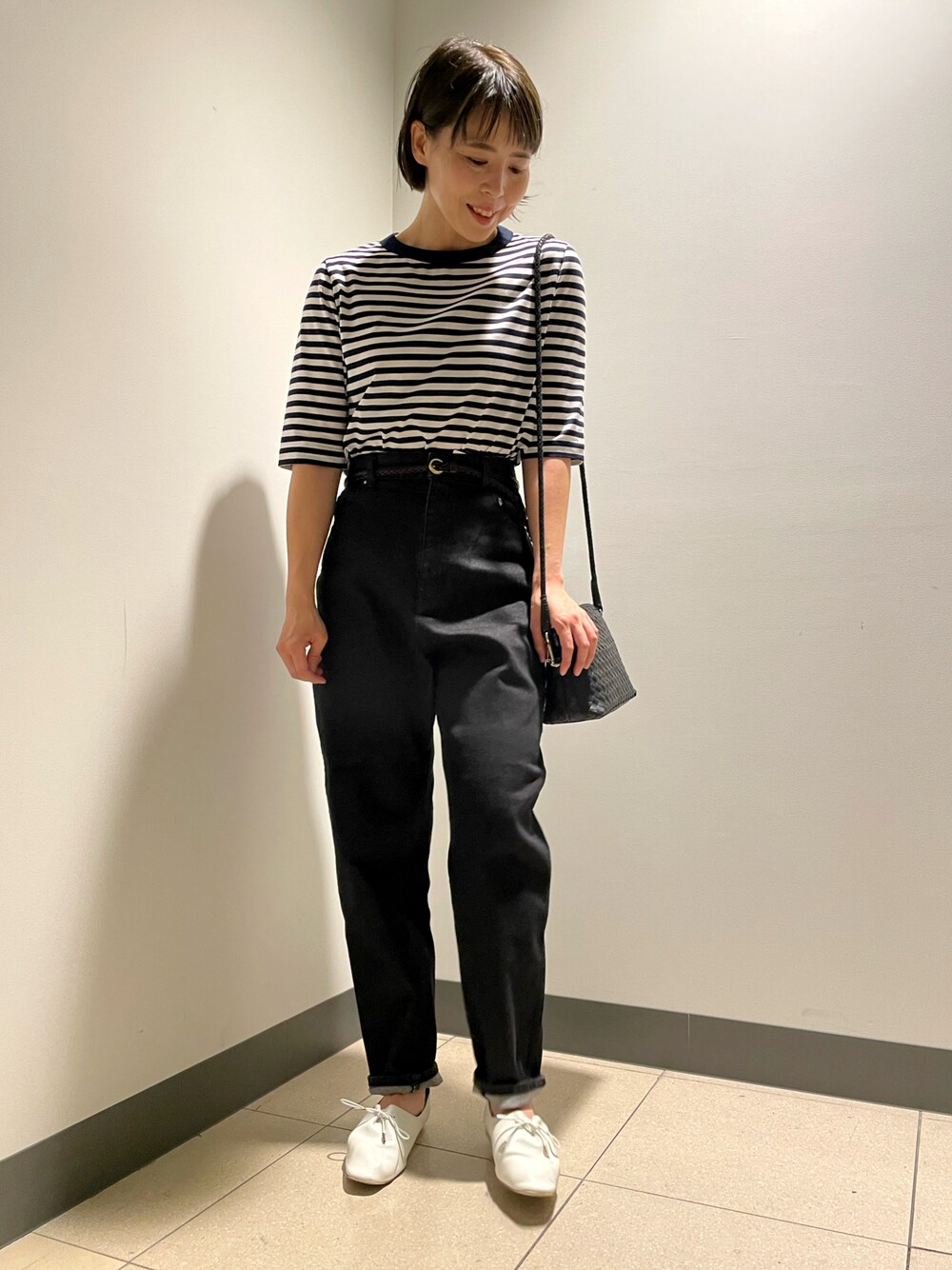 5部袖のヘビロテTシャツです♡ ハイウエストではけるキャロットデニムで スタイルアップ↑↑ 休日の楽ちんコーデです♪