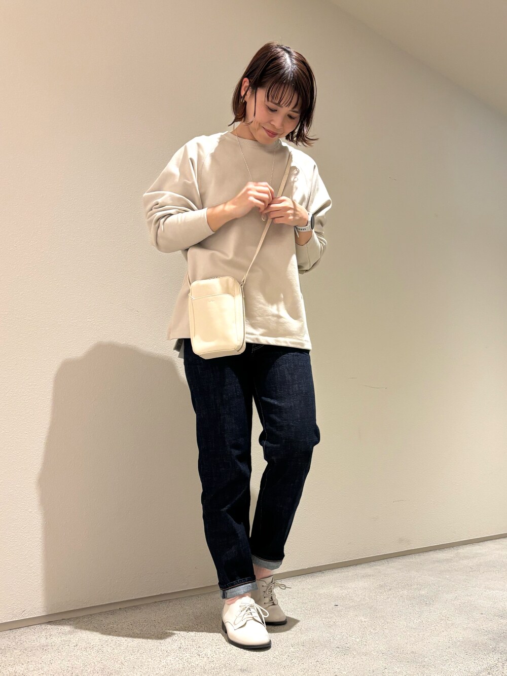 着回し抜群のプルオーバー ドルマンスリーブとサイドスリットで差がつくスウェットです。 デニム合わせで大人カジュアルなコーディネートです。