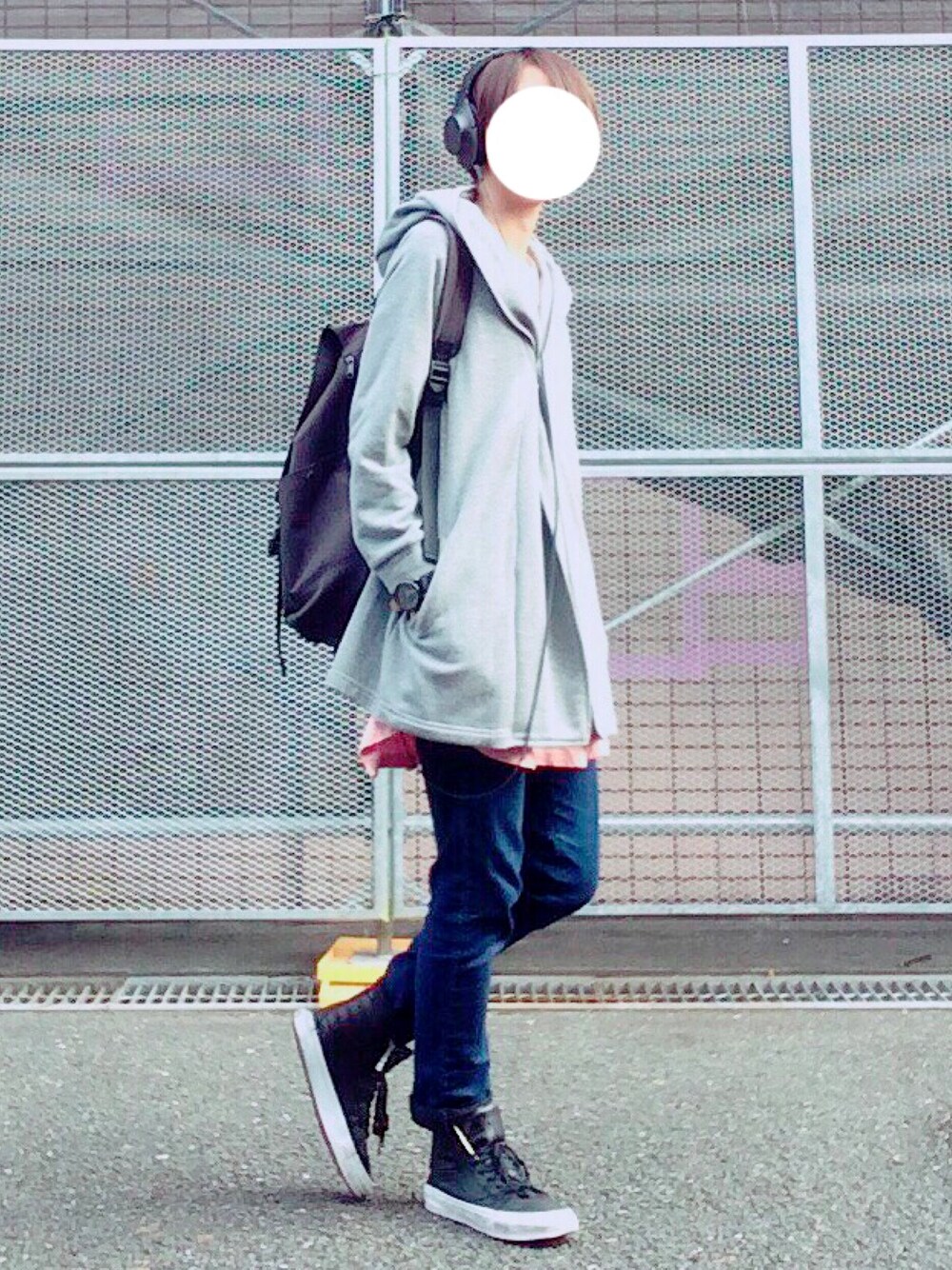 今日は雨が降るかもと思ってフード。 少しでも気分が明るくなるように色が多めです🍬 朝はちょっと肌寒いので、まだどうしても厚着めになってしまうのがかなしい...!