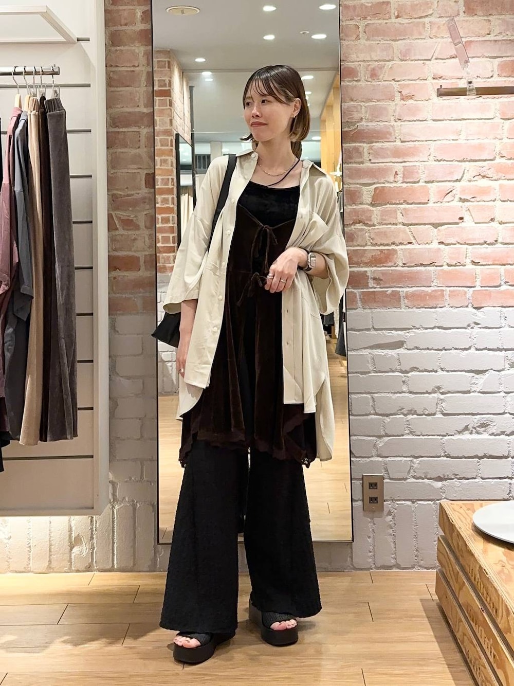 秋の先取りコーデ ベロア素材だといっきに秋らしいコーデに🍂 今の暑い時期からすぐ取り入れられて、 トレンド感あるコーデになりらます!
