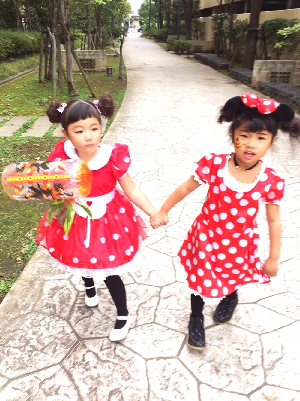 ハッピーハロウィン🎃👻 仮装続きでごめんなさい 幼稚園のお友達とパレードに参加しました❤️ 親友とダブルみにーちゃん