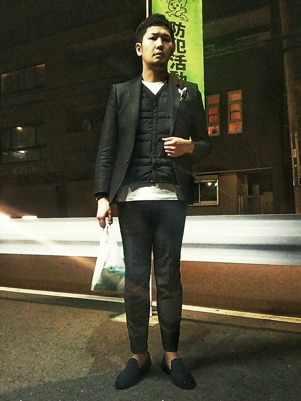 仕事帰りにぱしゃり まるでおっさん 笑 あ、靴を新調しました。 これで同じ木型で色ちがい4足目です 笑 話変わりまして最近良いジャケットに 安っぽい白のクルーネックTを入れるのが自分の中で流行ってます。 抜け感あるけど良い物着てるってギャップがたまらんす! そんでもって最近飲み食い激しいせいか顎のラインが丸くなってきました。やばいです。 といいつうも片手にはじゃがりこって所です。やばい。