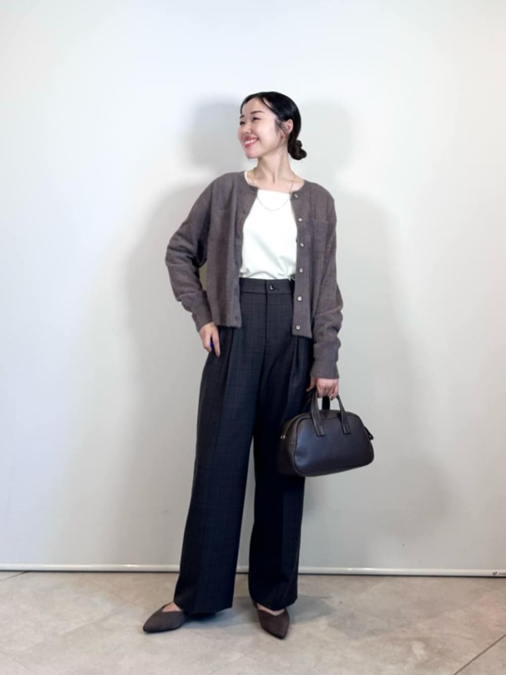 【サイズ感】 カーディガン:標準的 インナー:標準的⠀ ボトムス:標準的 シューズ: 標準的 【コーディネートポイント】⠀ オンオフ兼用できる綺麗めコーデ♡スクエアネックのインナーはアウターを羽織ってもデコルテが綺麗に見えておすすめです。パンツをスカートに変えると一気にフェミニンな印象でお召しいただけます♪