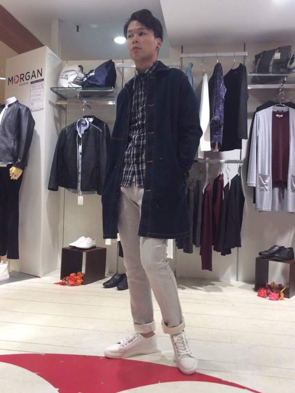 秋らしいデニム生地。 ロングが強い今年を メインにしたコーディネートです。