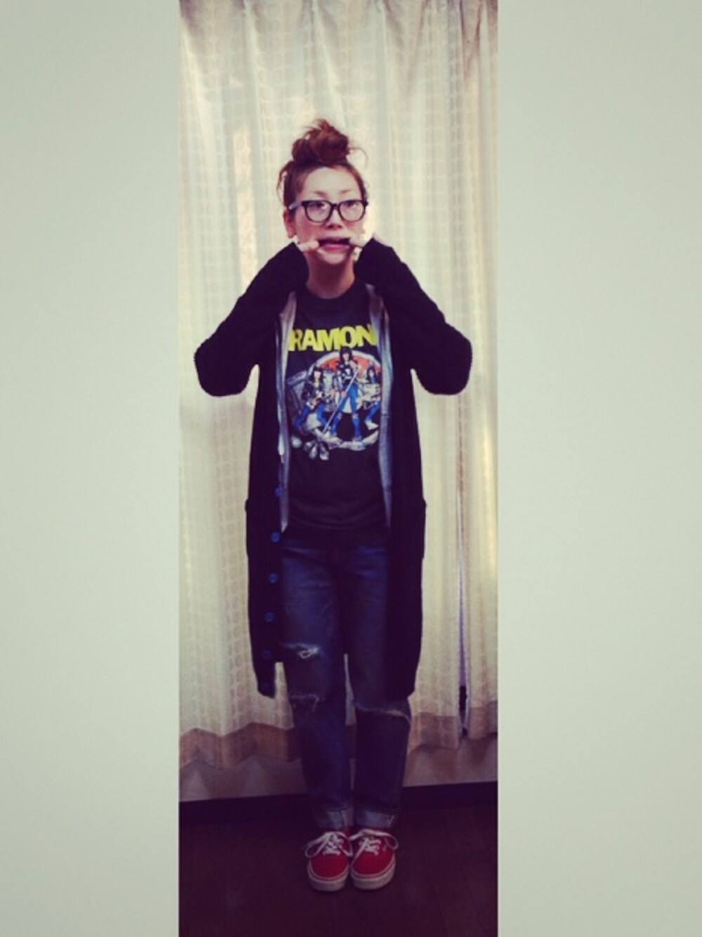 おはよう☺︎ 寒い日の、パーカー&カーディガンの重ね着を。 ラモーンズのTシャツを。 お気に入りのデニムを。 それだけで、ご機嫌♡ そんな、金曜日〜⤴︎⤴︎⤴︎😚✨