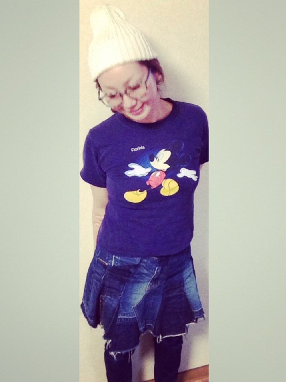 新入りの、メガネ。 今日のポイント😚だよ。 眠いから写真ぼんやり… スキニーデニムがスパッツ( レギンスか。)のかわり。だよ。 メガネ、メガネ…