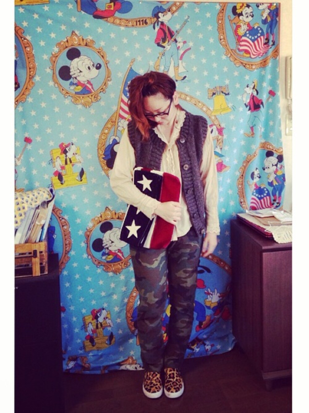 やっとUP😘 子供の学芸会の衣装担当になりました。。 ミシンできるお母さんいる?との担任の問いに、立候補した長女のために頑張って作るよ。👗👕👖 そして、そんな私の今日のテーマは、 「I LOVE アメリカ★な、職人のおじいさん」 ニットベストをあえての、おじいさん風に。 可愛いじいちゃんでしょ😚👓 ミッキー好きはまだまだ止まらず、ついには壁にも。✨✨✨ さて、明日はハロウィン🎃🎃👻👻🎉🎉 日曜日の11月2日は公園コーデだよ🍀 WEARのパパ部とママ部合同企画だって✨ 参加しなきゃねー✨ ばいびー。