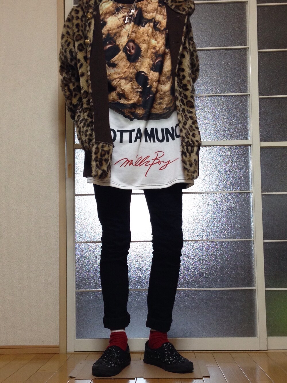 このヒョウ柄のパーカー 可愛いんだけど目立つから 地元(田舎)で着る事を 禁止されてます(๑˘・з・˘) このチョコチップクッキーTも 可愛いんだよなー じじいが着てるけど。 これ着てチョコチップクッキー 食っちゃう人とかいるんだろうなぁ。。。 もちろん僕は食べましたが👍🍪🍪🍪