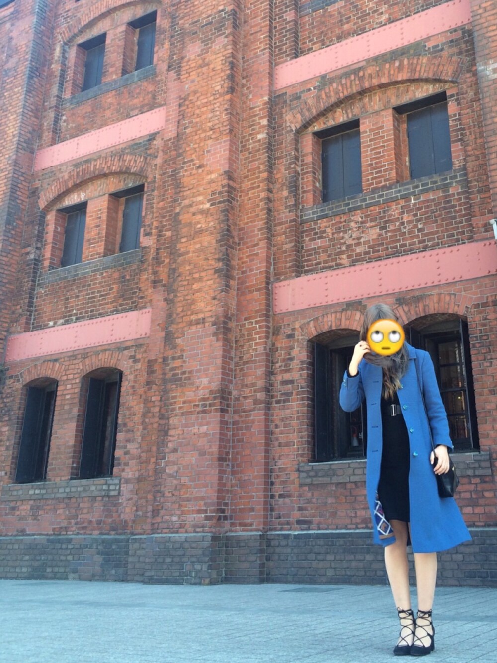赤レンガです. なんとも言えない色合いの ブルーコート.お気に入り. 髪の毛の色変えました!!